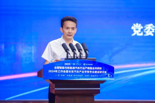 会议现场,共同体理事长、长安汽车学习中心常务副总经理、人力资源部副总经理王武生介绍了长安汽车的发展现状,分析了新能源汽车产业的机遇与挑战。安驿公司总经理耿溢作《共同体2024年上半年工作报告》,晒出共同体在金专业金课程打造、国际产教合作等方面作出的成果。安驿公司AI数据服务事业部副总监傅金铭发布新能源汽车、智能网联汽车(自动驾驶方向)、汽车新营销专业共建方案。中国汽车工业协会智能网联汽车分会秘书长韩昭作《中国智能网联汽车产业生态建设》主题报告。二级教授邱葭菲作《新质生产力视域下,高职工科专业建设理念与实践》主题报告。